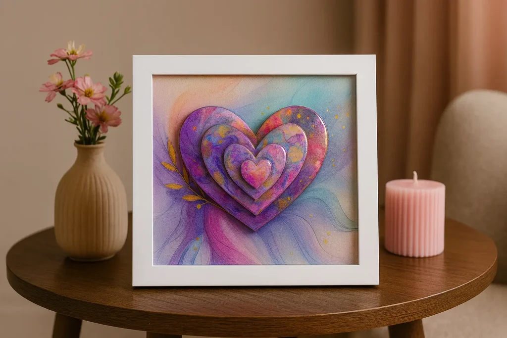 - Cuadro en forma de corazón: ideal como regalo para mujer, para aniversarios o celebraciones románticas.