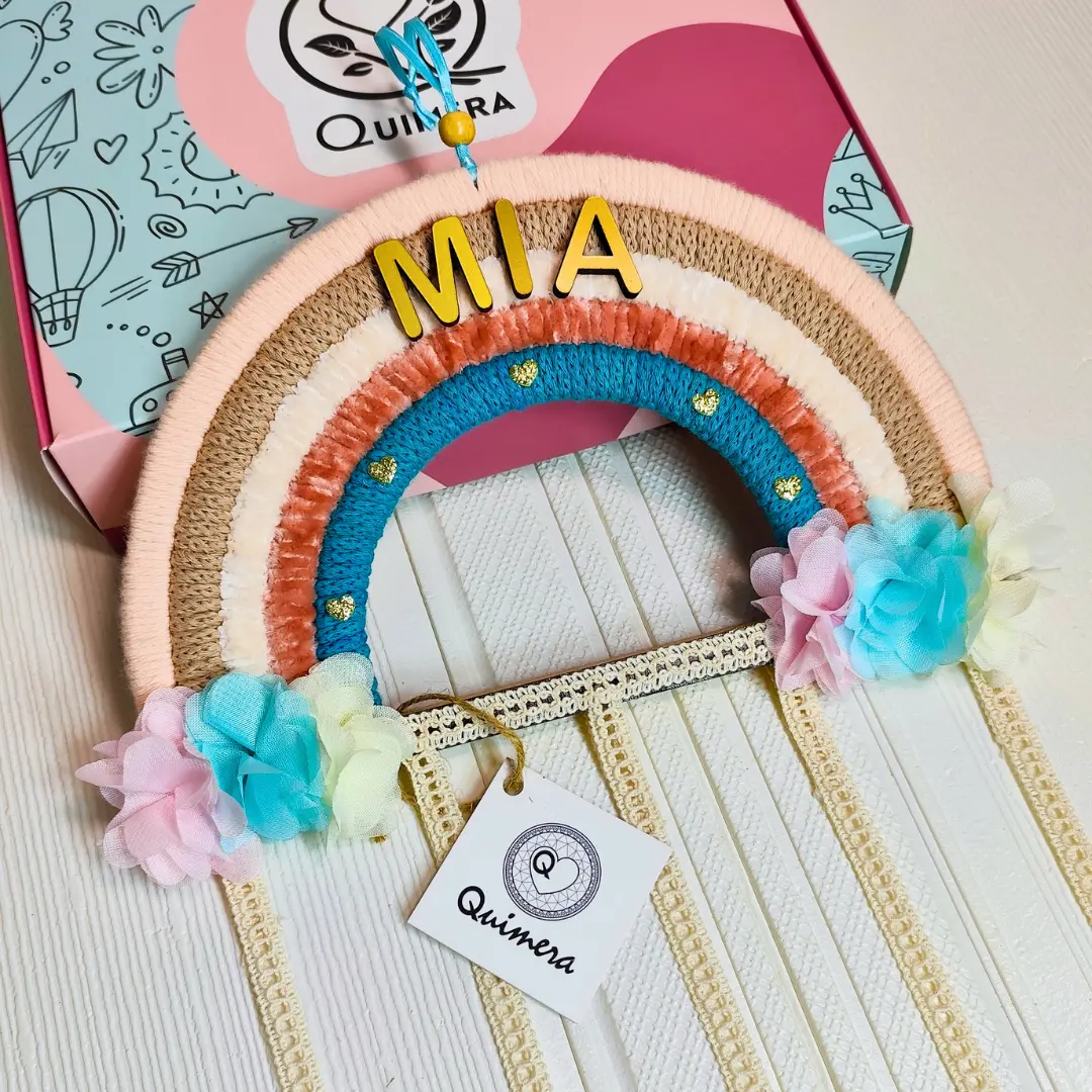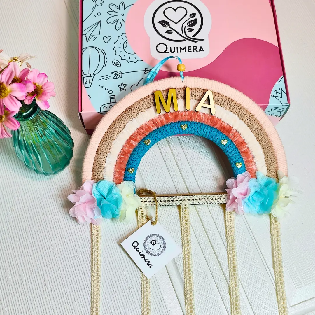 Ordena ganchitos y vinchas con nuestro Arcoíris orgnizdor de ganchos , hecho a mano. Personalizado con el nombre, añade un toque decorativo y funcional al espacio de la pequeña de la casa.