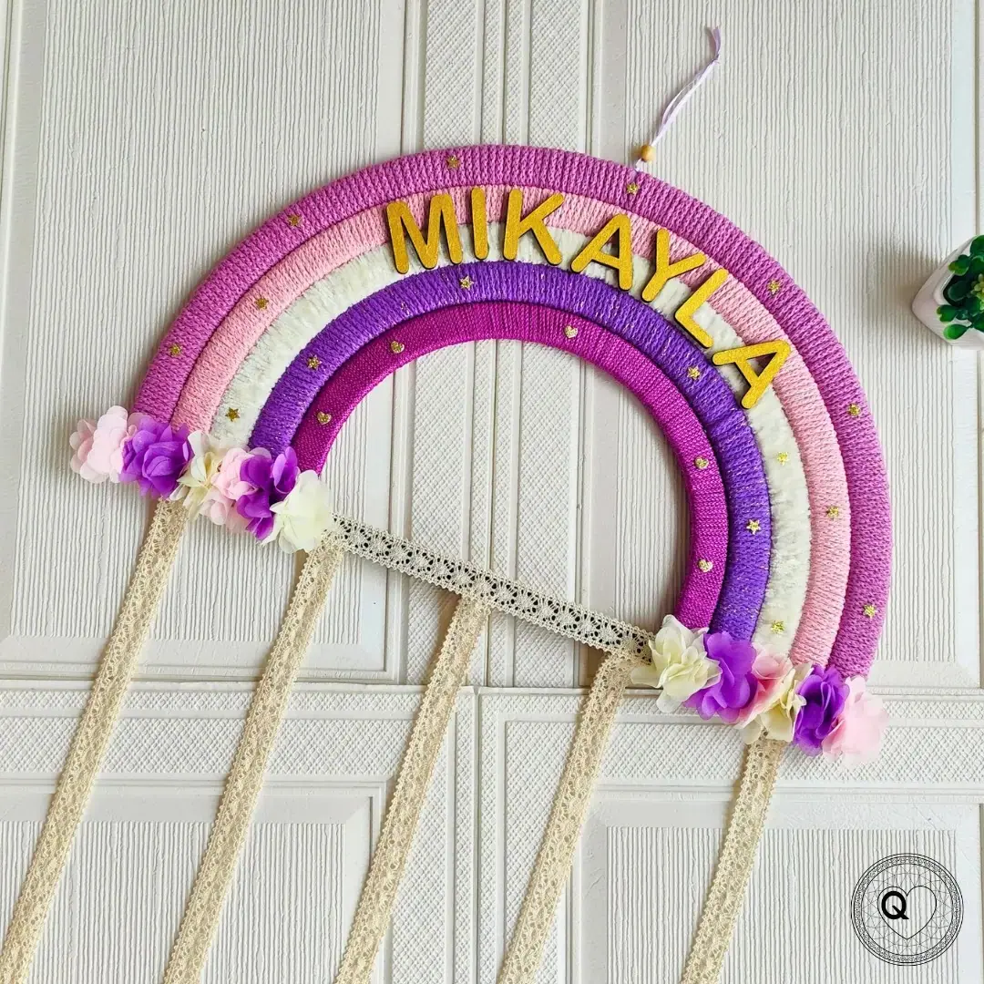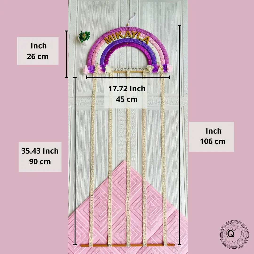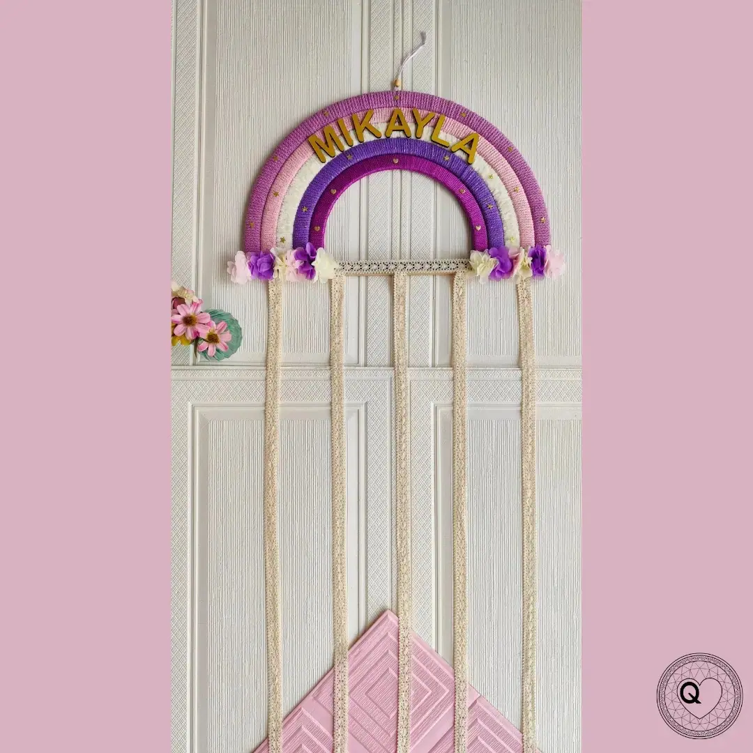 Con un tamaño extra grande de 45 cm de ancho por 106 cm de largo total, y una zona útil de ganchos de 90 cm, este organizador es ideal para quienes necesitan espacio adicional sin renunciar al estilo. Elaborado a mano con materiales de alta calidad, combina cintas resistentes, detalles florales y un arcoíris en tonos delicados que aportan un toque único a cualquier pared o puerta.